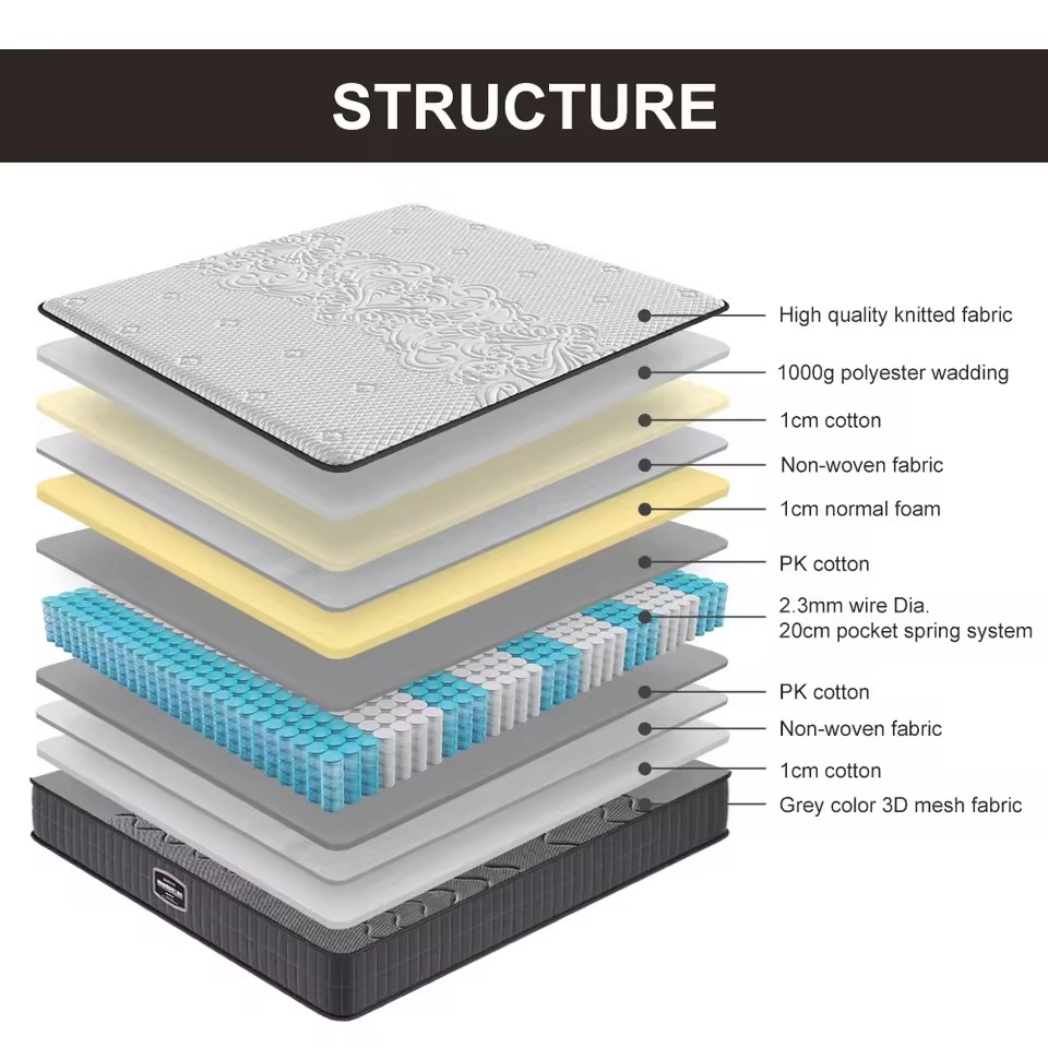 - Pocket Spring System: Designed to adapt to body movements; paired with a thick foam layer for extra soft cushioning and enhanced comfort.