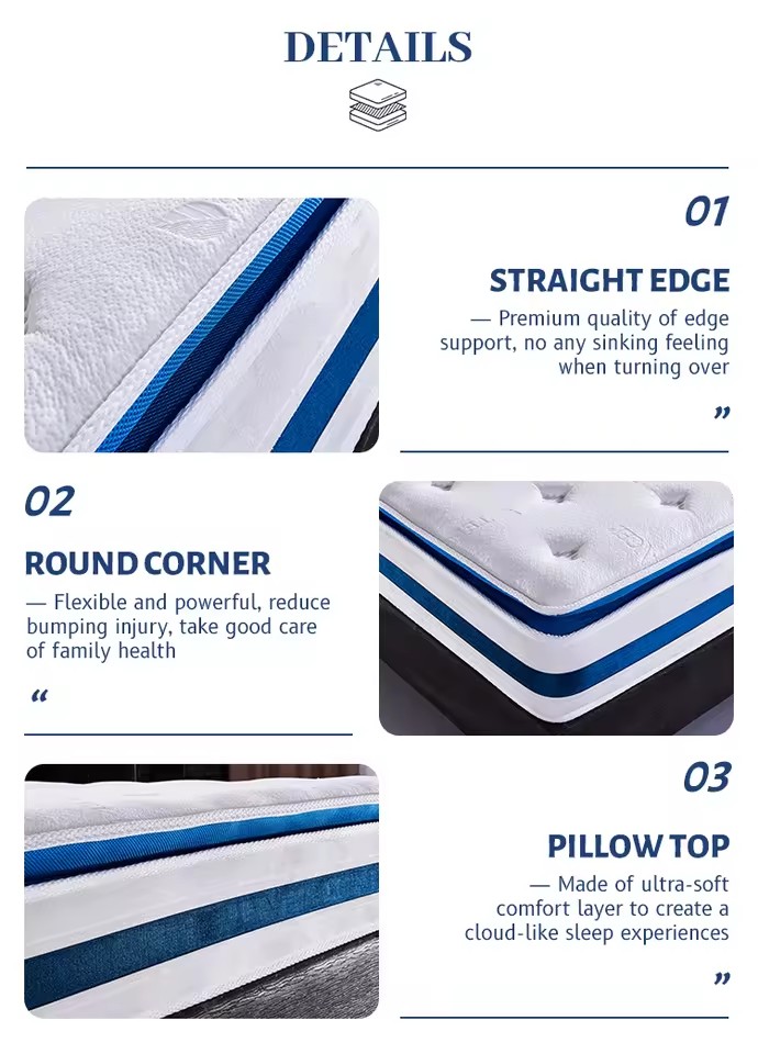 • Pocket Spring System: Designed to adapt to body movements; paired with a thick foam layer for extra soft cushioning and enhanced comfort.